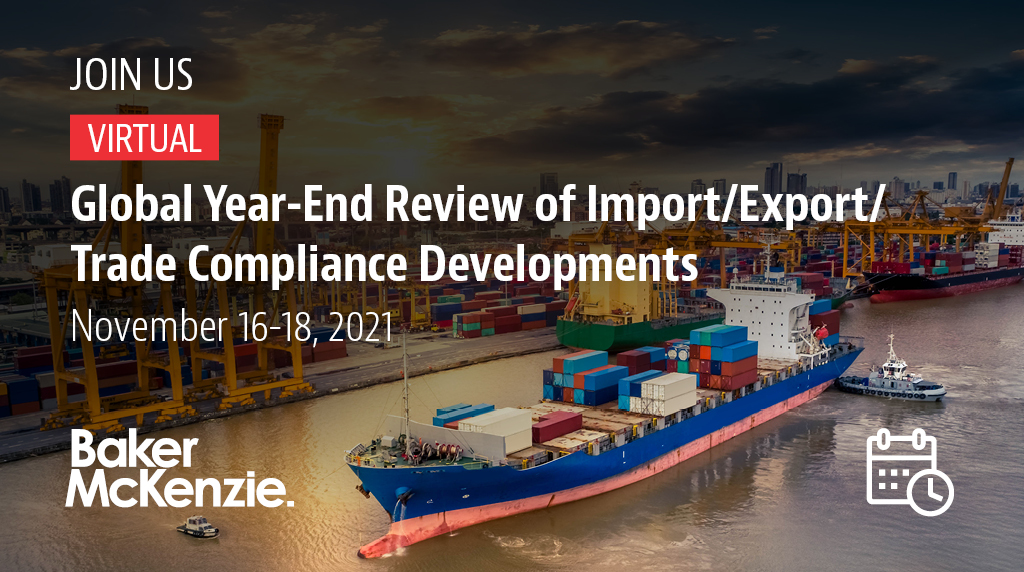 We are pleased to invite you to our Global Year-End Review of Import/Export/Trade Compliance Developments on November 16, 17 and 18. In lieu of our annual conference in Santa Clara, CA, we are excited to again provide a virtual offering available to all our clients and friends worldwide! Please join our international trade compliance lawyers from around the world as they discuss and examine major global legislative, judicial and administrative activities and trends in export controls, trade sanctions, customs compliance, and import requirements. This conference will be comprised of 75 minute sessions over the course of three days and clients also have the opportunity to request a virtual one-to-one meeting with our International Trade attorneys to discuss topics of interest.